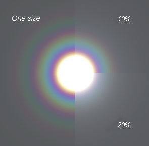 Nếu quang hoa trở nên sắc nét với nhiều vòng sáng, thì tất cả các giọt mây phải có kích thước giống nhau. Nếu không thì tất cả các quang hoa ở các kích thước khác nhau được sinh ra bởi các giọt nhỏ sẽ tạo nên hình ảnh đơn thuần là một vệt mờ.