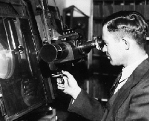 Ảnh: Clyde Tombaugh sử dụng một thiết bị để so sánh hai hình ảnh cùng một vùng trời được chụp vào hai đêm khác nhau. Hình ảnh thuộc đài quan sát Lowell