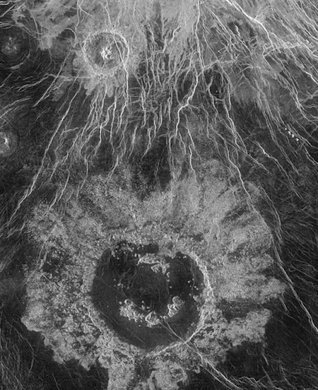 Một miệng núi lửa trên bề mặt sao Kim. Nó rộng 45 dặm (72 km).