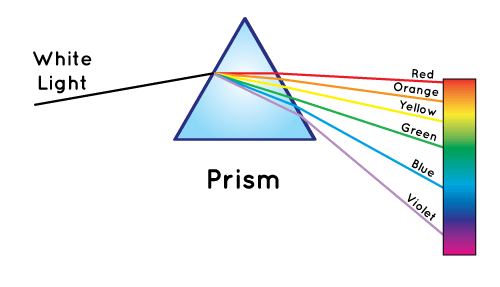 Khi ánh sáng trắng chiếu qua lăng kính thì ánh sáng bị tách ra thành tất cả các màu của nó. Lăng kính là một tinh thể có hình dạng đặc biệt.