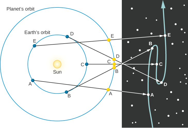 Yếu tố phức tạp trong việc giải thích chuyển động của các hành tinh là sự lang thang biểu kiến của chúng trên bầu trời, là kết quả kết hợp giữa chuyển động của chúng với quỹ đạo của Trái Đất. Khi chúng ta quan sát các hành tinh từ vị trí thuận lợi trên Trái Đất đang chuyển động, nó giống như xem một cuộc đua ô tô trong khi bạn đang thi đấu trong đó. Đôi khi xe của đối thủ vượt qua bạn, nhưng lúc khác bạn lại vượt qua họ, khiến họ có vẻ lùi lại một lúc so với bạn.