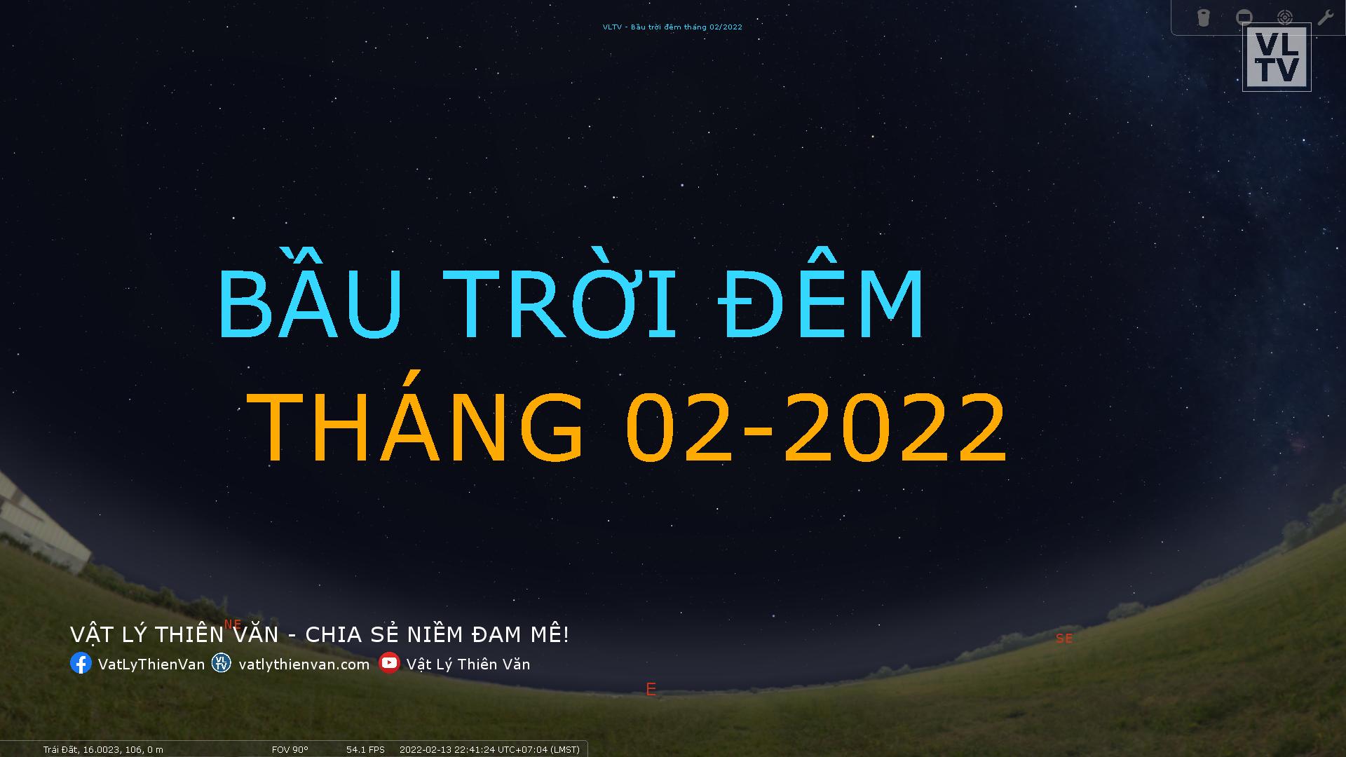 Hướng dẫn quan sát các chòm sao, các vật thể sâu, các hành tinh, và các sự kiện thiên văn học đáng chú ý trên bầu trời đêm tháng 02/2022.