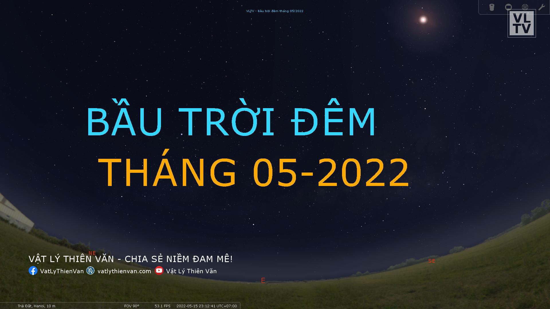 Hướng dẫn quan sát các chòm sao, các vật thể sâu, các hành tinh, và các sự kiện thiên văn học đáng chú ý trên bầu trời đêm tháng 05/2022.