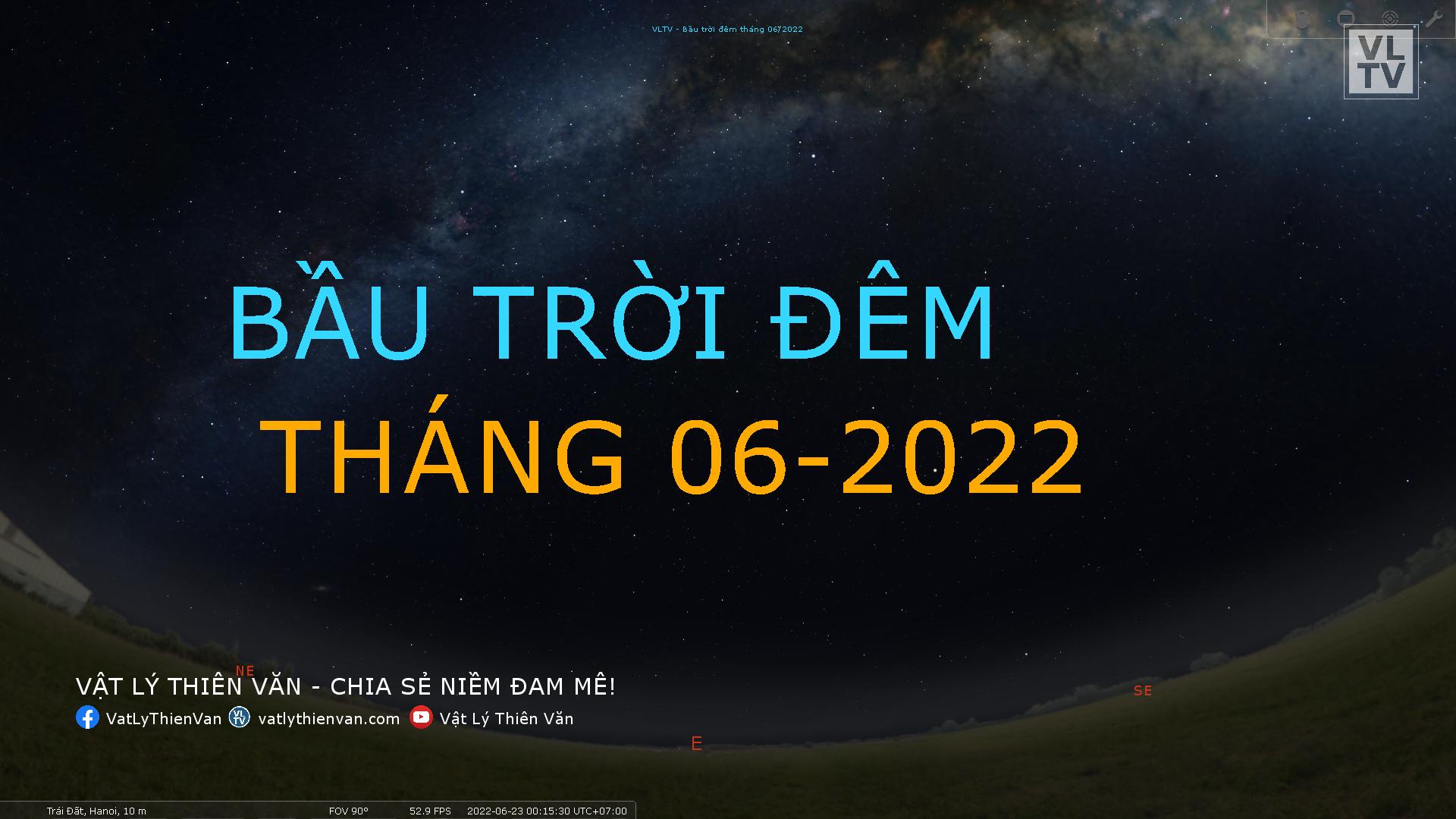 Hướng dẫn quan sát các chòm sao, các vật thể sâu, các hành tinh, và các sự kiện thiên văn học đáng chú ý trên bầu trời đêm tháng 06/2022.