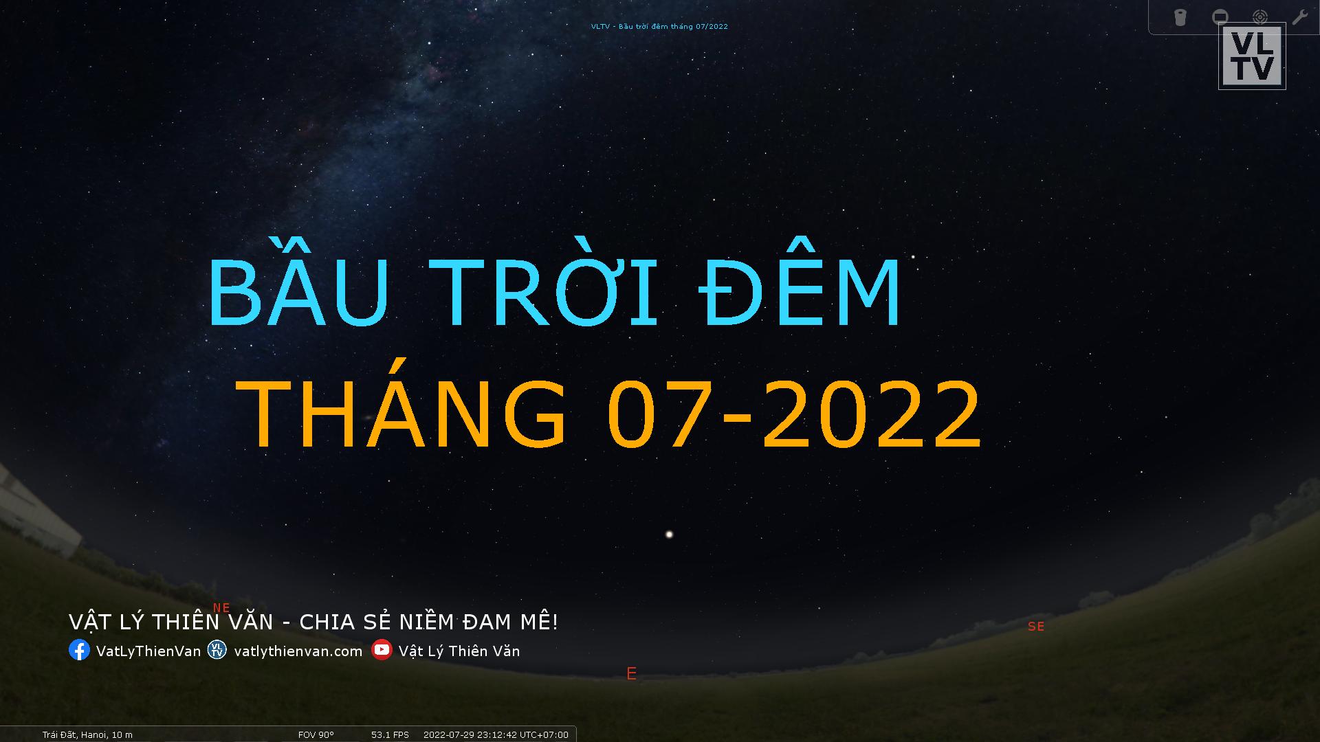 Hướng dẫn quan sát các chòm sao, các vật thể sâu, các hành tinh, và các sự kiện thiên văn học đáng chú ý trên bầu trời đêm tháng 07/2022.