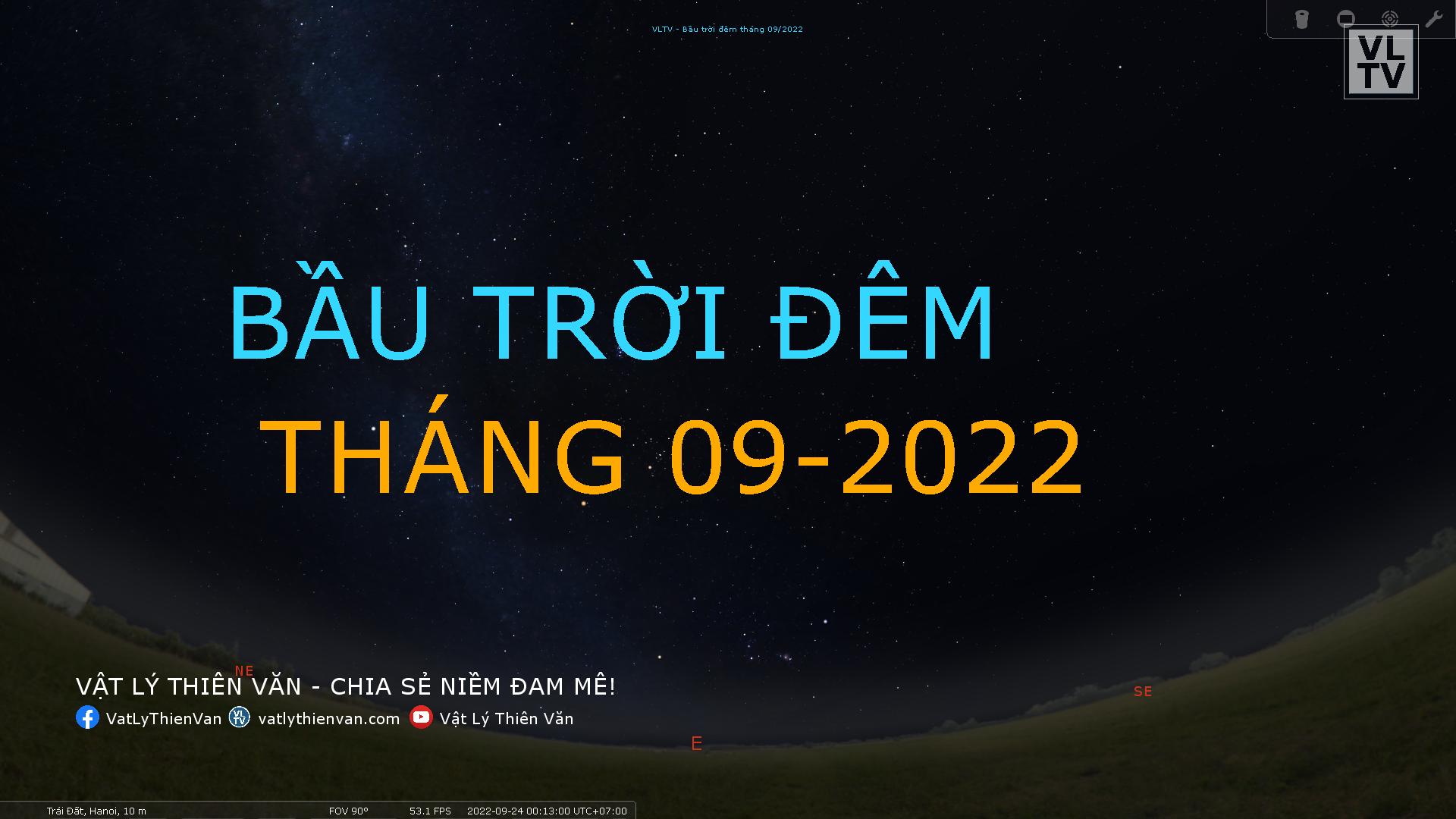 Hướng dẫn quan sát các chòm sao, các vật thể sâu, các hành tinh, và các sự kiện thiên văn học đáng chú ý trên bầu trời đêm tháng 09/2022.