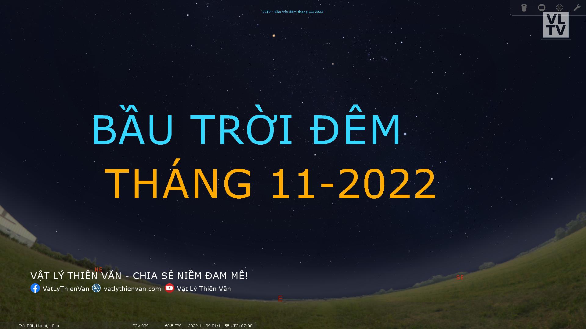 Hướng dẫn quan sát các chòm sao, các vật thể sâu, các hành tinh, và các sự kiện thiên văn học đáng chú ý trên bầu trời đêm tháng 11/2022.