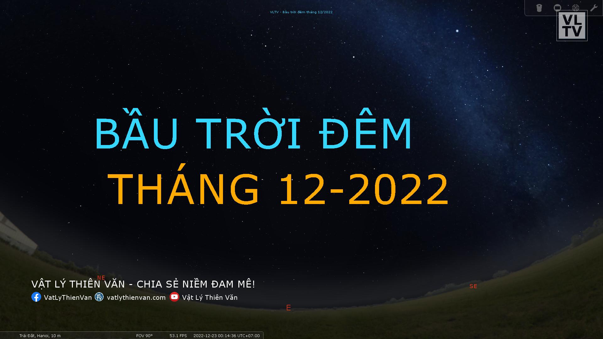 Hướng dẫn quan sát các chòm sao, các vật thể sâu, các hành tinh, và các sự kiện thiên văn học đáng chú ý trên bầu trời đêm tháng 12/2022.