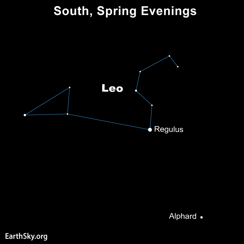 Ở Bắc Bán Cầu, khi bạn đứng quay mặt về hướng Nam vào một buổi tối mùa Xuân - Thì chòm Sư Tử sẻ ở ngay trên đầu bạn. Alphard sẽ nằm ngay bên dưới Regulus, ngôi sao sáng nhất của chòm Sư Tử. Earthsky.org