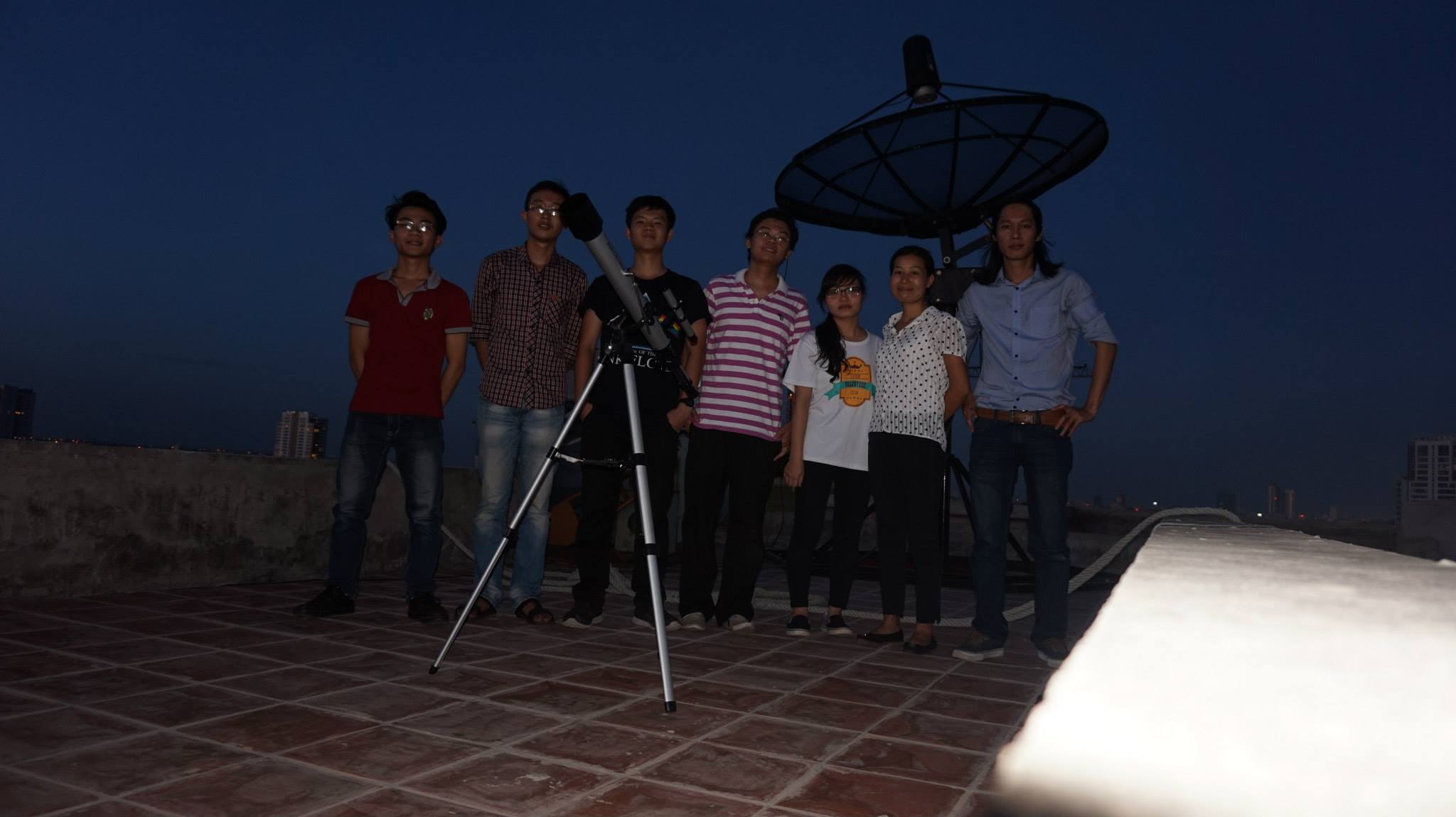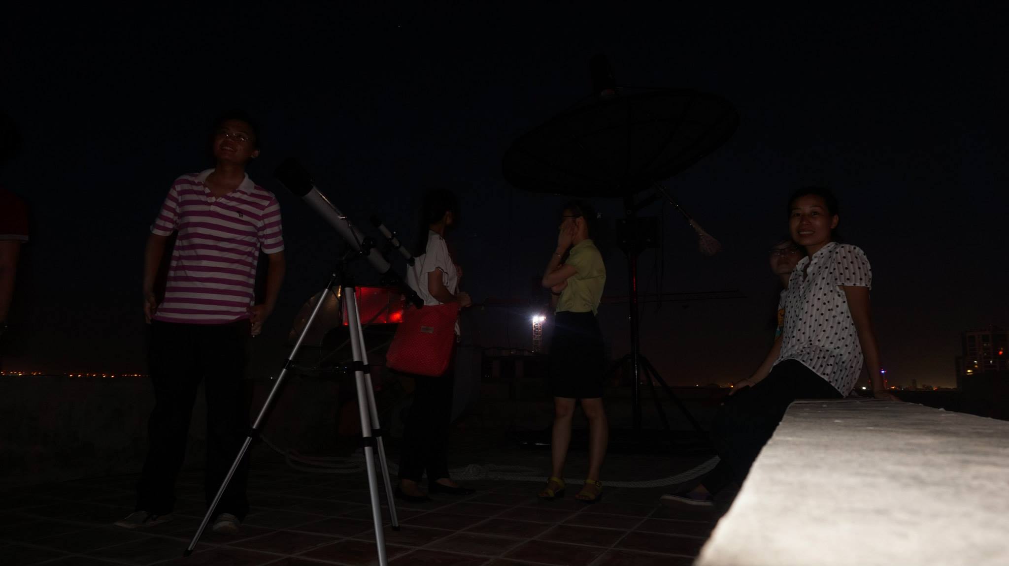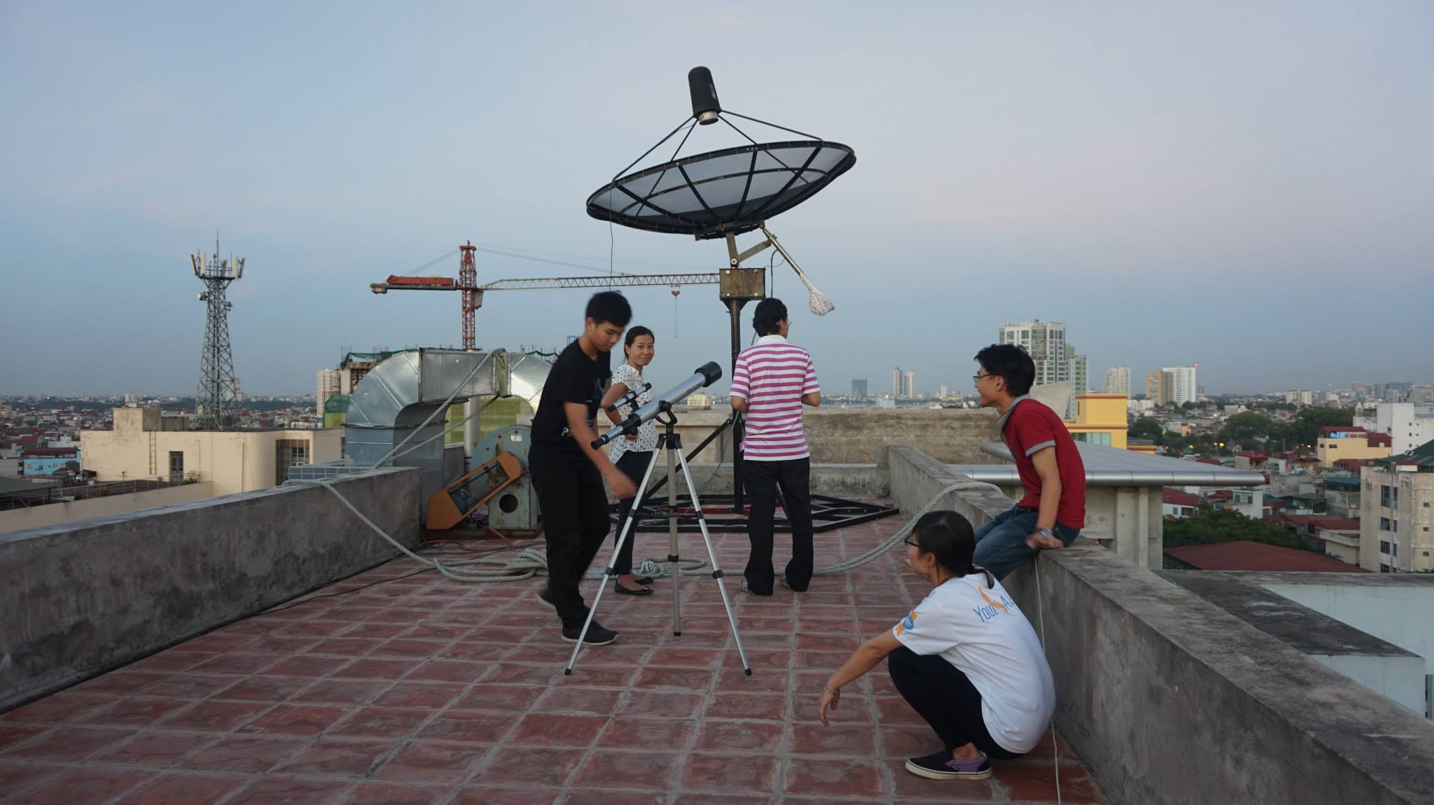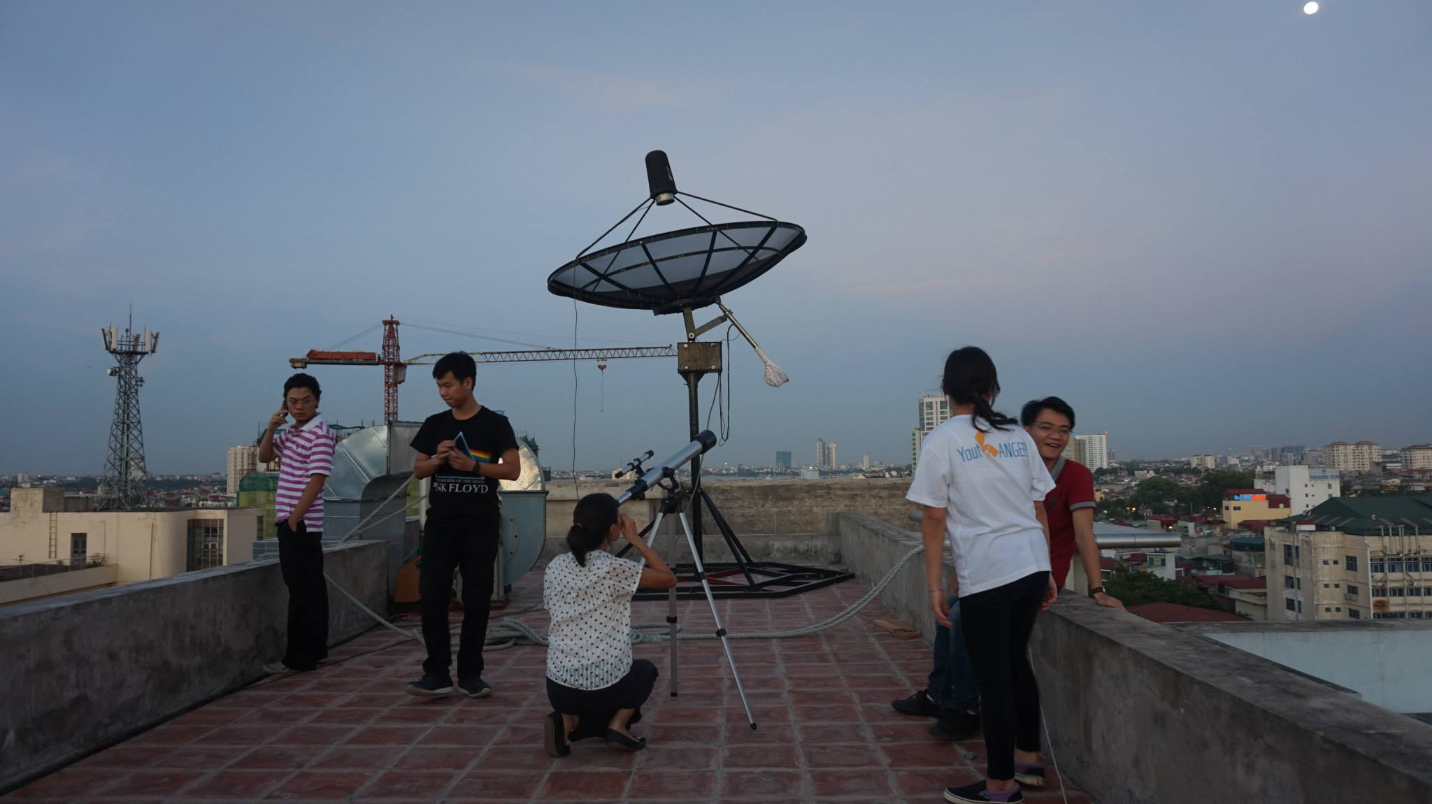 VLTV cùng với giảng viên và sinh viên khoa Vũ trụ và Hàng không, trường Đại học Khoa Học & Công Nghệ Hà Nội (USTH), đã lên sân thượng tòa nhà USTH để chiêm ngưỡng sự kiện tuyệt vời này.