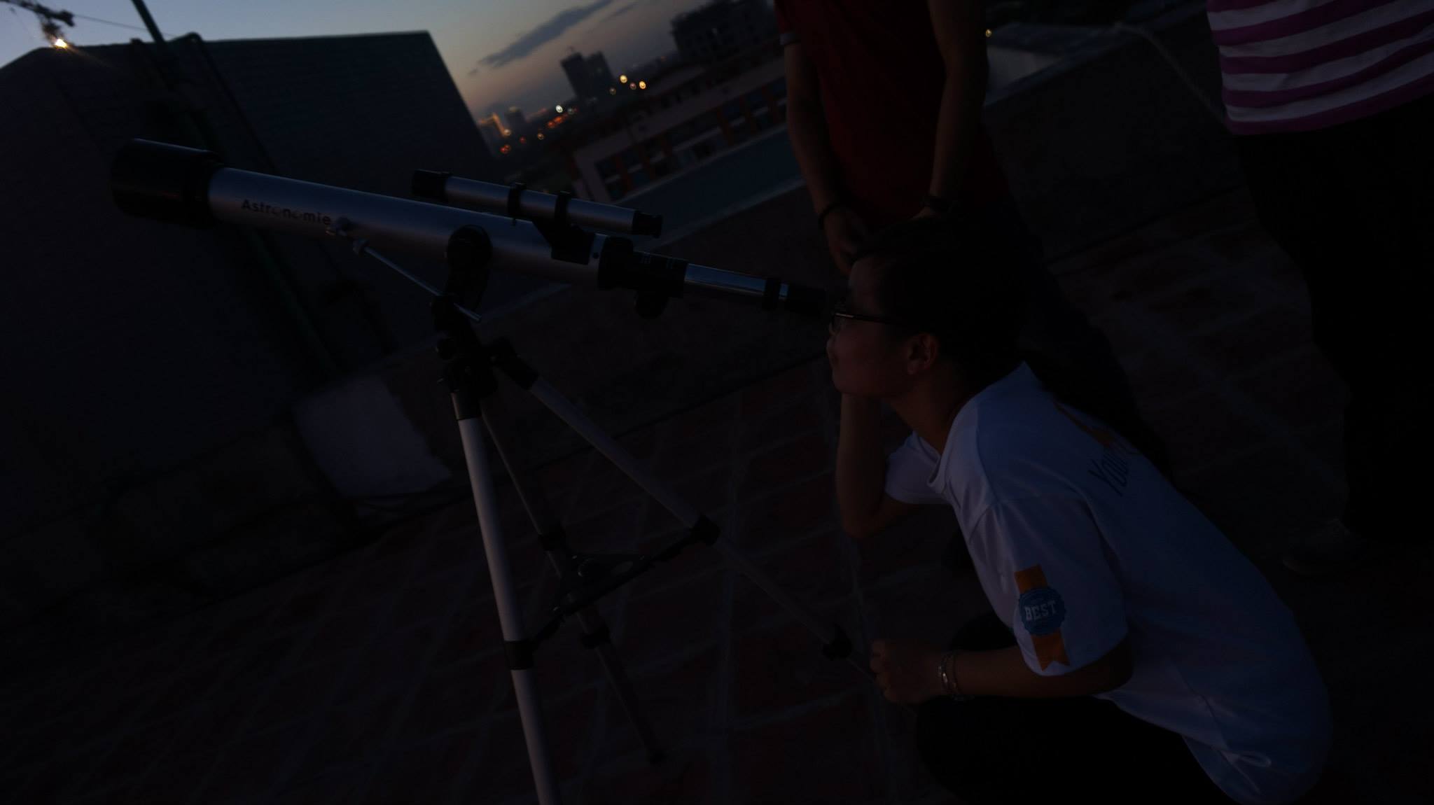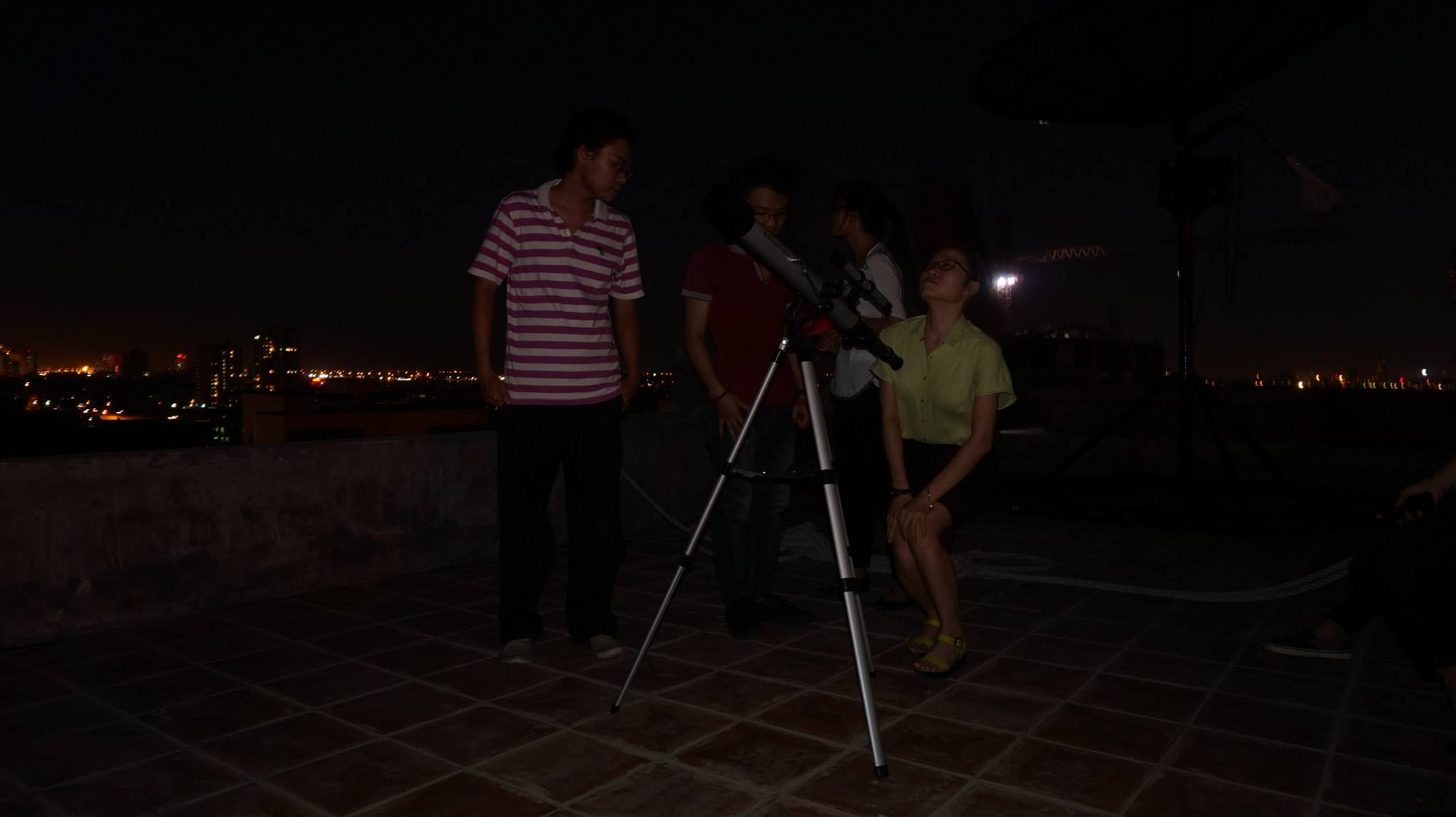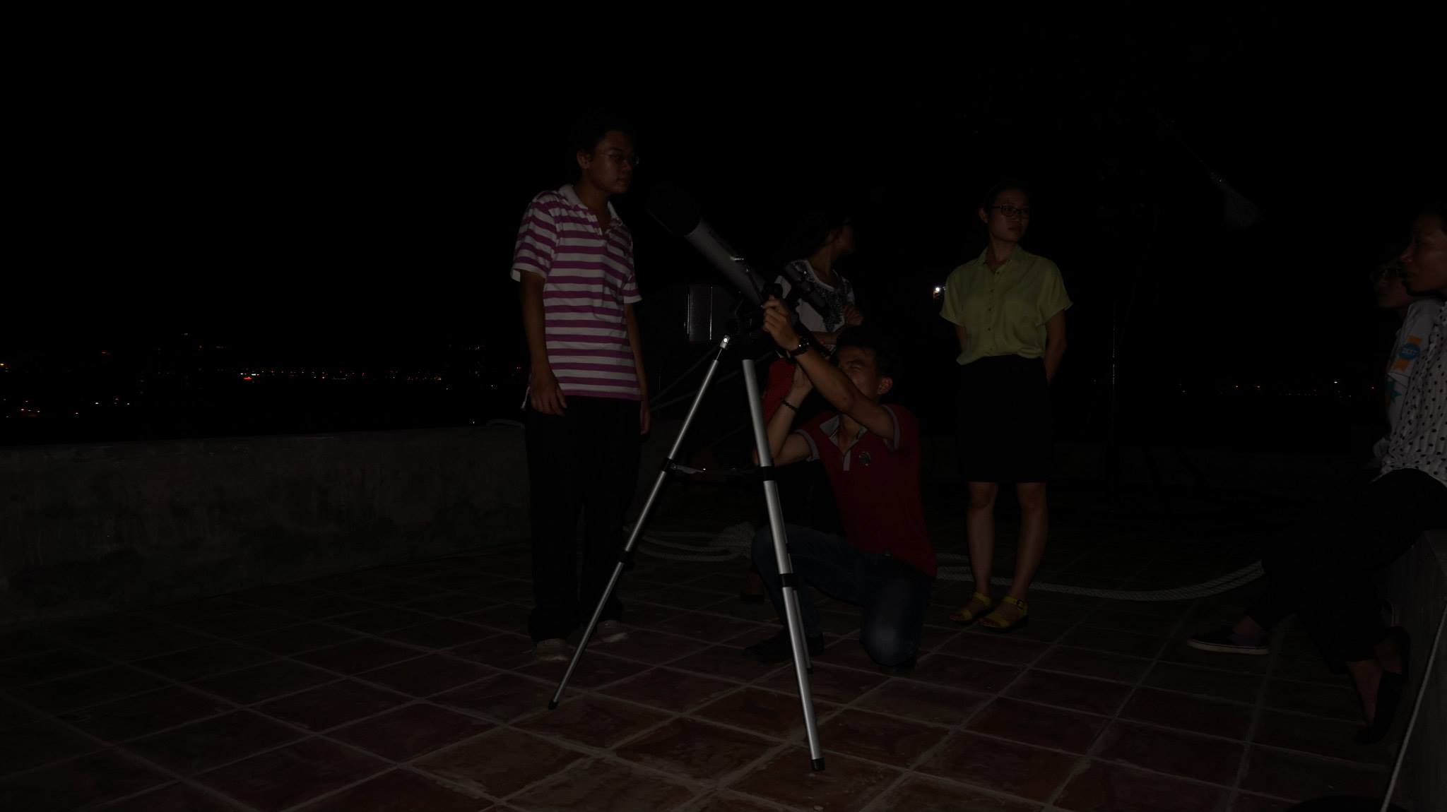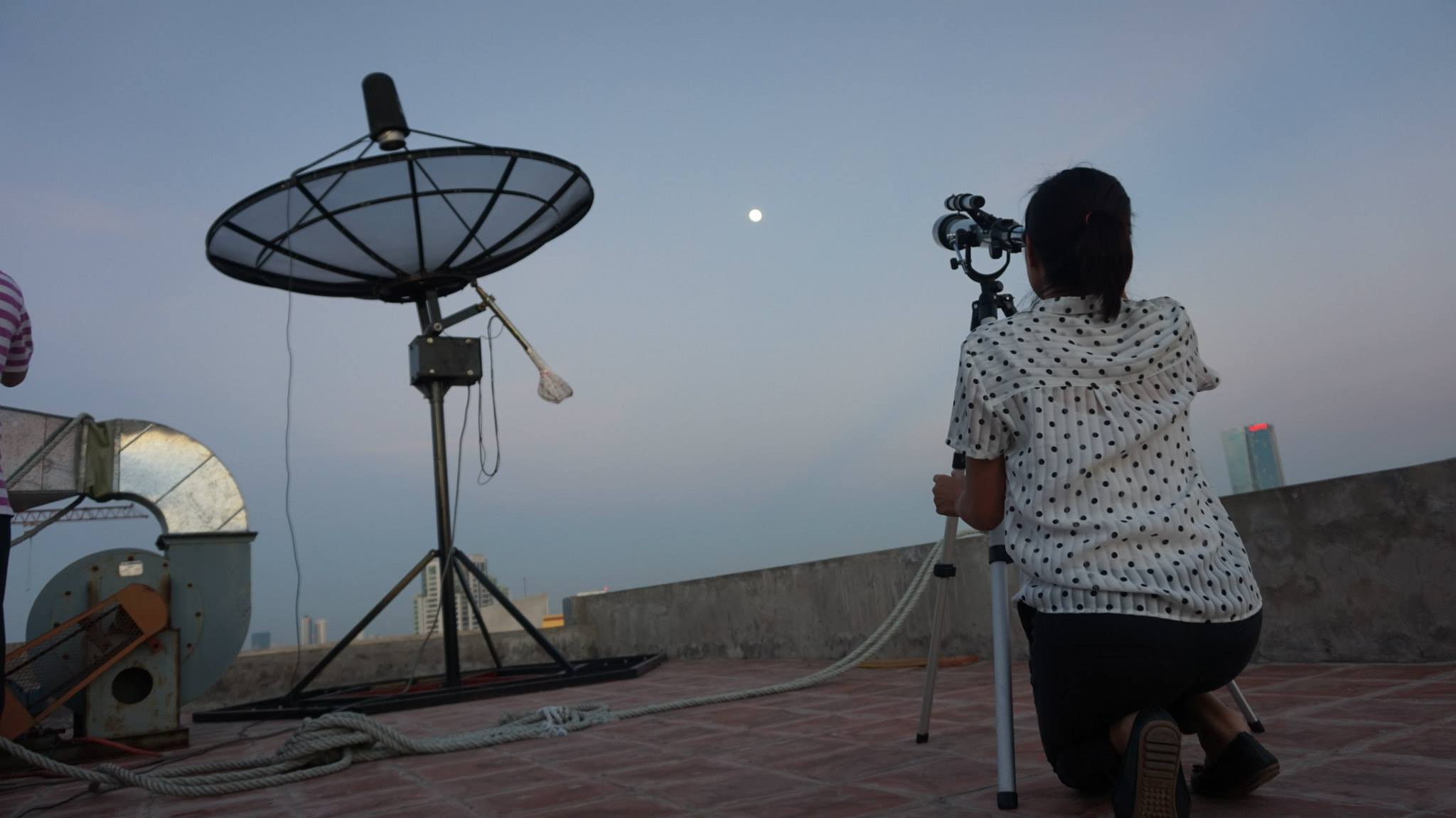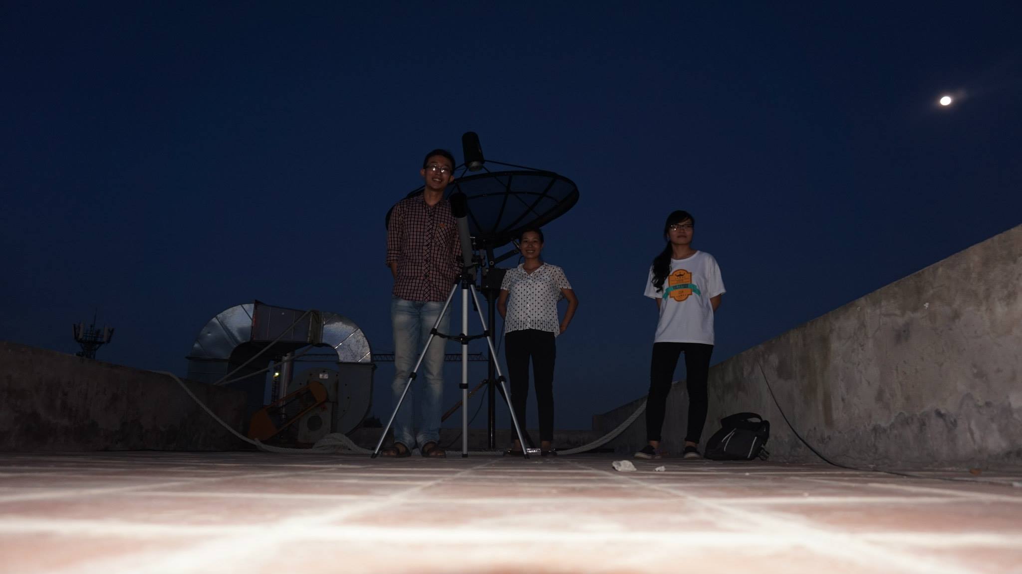 VLTV cùng với giảng viên và sinh viên khoa Vũ trụ và Hàng không, trường Đại học Khoa Học & Công Nghệ Hà Nội (USTH), đã lên sân thượng tòa nhà USTH để chiêm ngưỡng sự kiện tuyệt vời này.