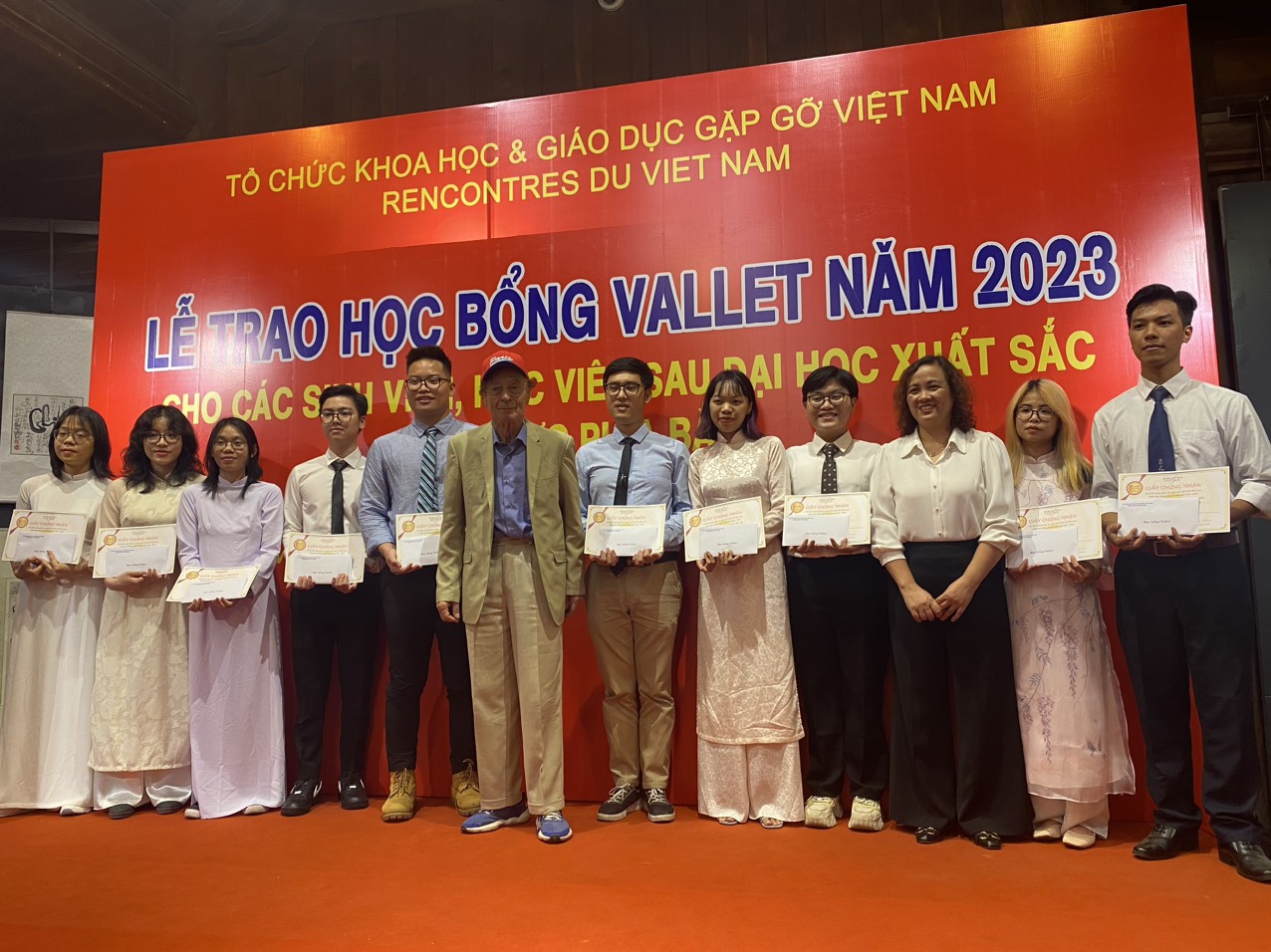 Ảnh bìa. Lễ trao học bổng Vallet 2023. Nguyễn Thị Yên Bình đứng thứ 3 từ bên trái. Ảnh: USTH.