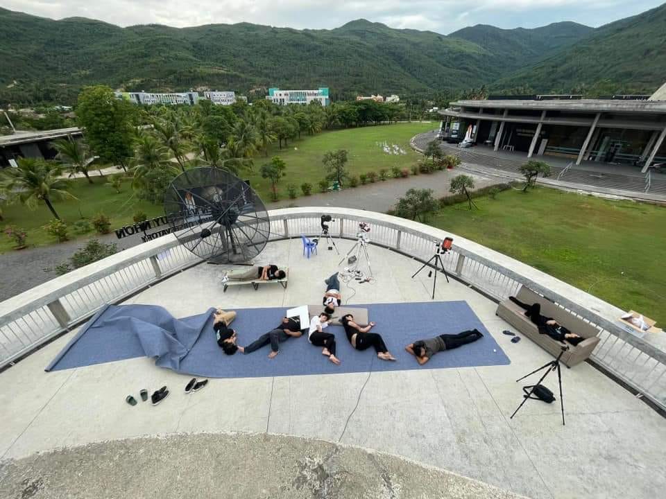 Hình 11. Khung cảnh quen thuộc khi các nhà thiên văn nghiệp dư đón bình minh. Đón bình minh tại Đài thiên văn Quy Nhơn sau một đêm quan sát cộng đồng và một bữa tiệc thiên văn là một trải nghiệm tuyệt vời.