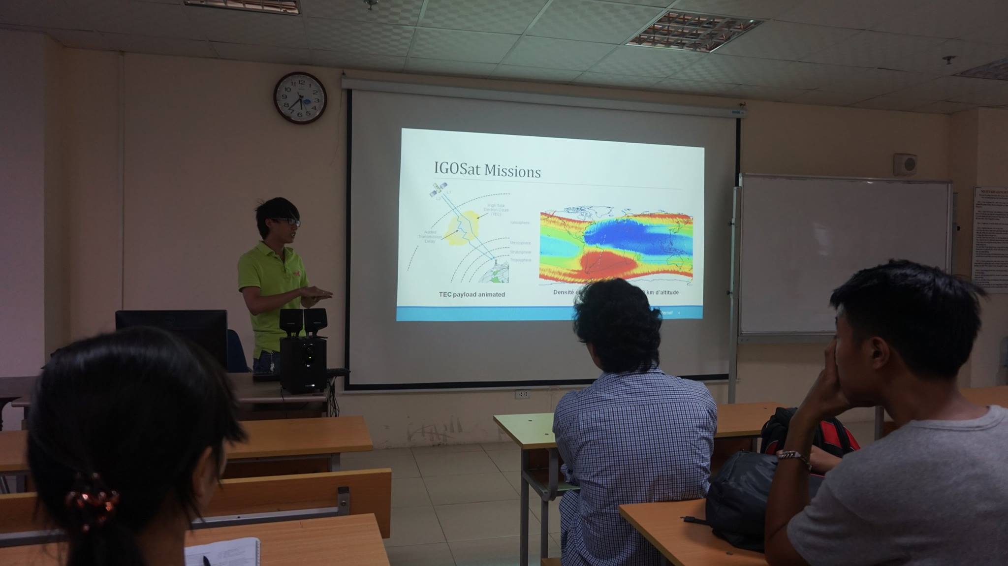 - Đề tài của Phạm Văn Pháp vừa được bảo vệ ngày 18/9/2015 vừa qua, hướng đến việc thiết kế kỹ thuật và mô phỏng khả năng hoạt động của vệ tinh IGOsat do Trung tâm Nghiên cứu Vũ trụ Quốc gia Pháp (CNES) phát triển, dự kiến sẽ phóng lên quỹ đạo năm 2018.