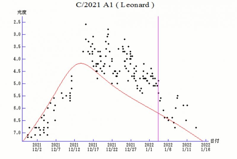 Biểu đồ độ sáng của sao chối cuối năm 2021. Seiichi Yoshida