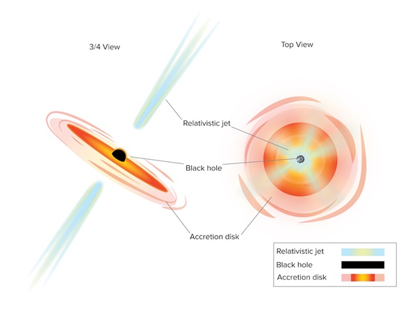 Về mặt kỹ thuật, chúng ta ở đây đang diễn tả 3 đối tượng. Đó là lỗ đen bắn ra một luồng phóng xạ vuông góc với vị trí quan sát của chúng ta thì được gọi là một thiên hà vô tuyến (radio galaxy). Nếu luống phóng xạ đó ở tại một góc khác, nó được gọi là một chuẩn tinh (quasar). Nếu luồng phóng xạ đó hướng thẳng về phía chúng ta, khiến nó đủ sáng để thăm dò được bởi các công cụ trên Trái Đất ở khoảng cách khoảng 9 tỷ năm ánh sáng, thì đó là một chuẩn tinh rất nhỏ gọn blazar.