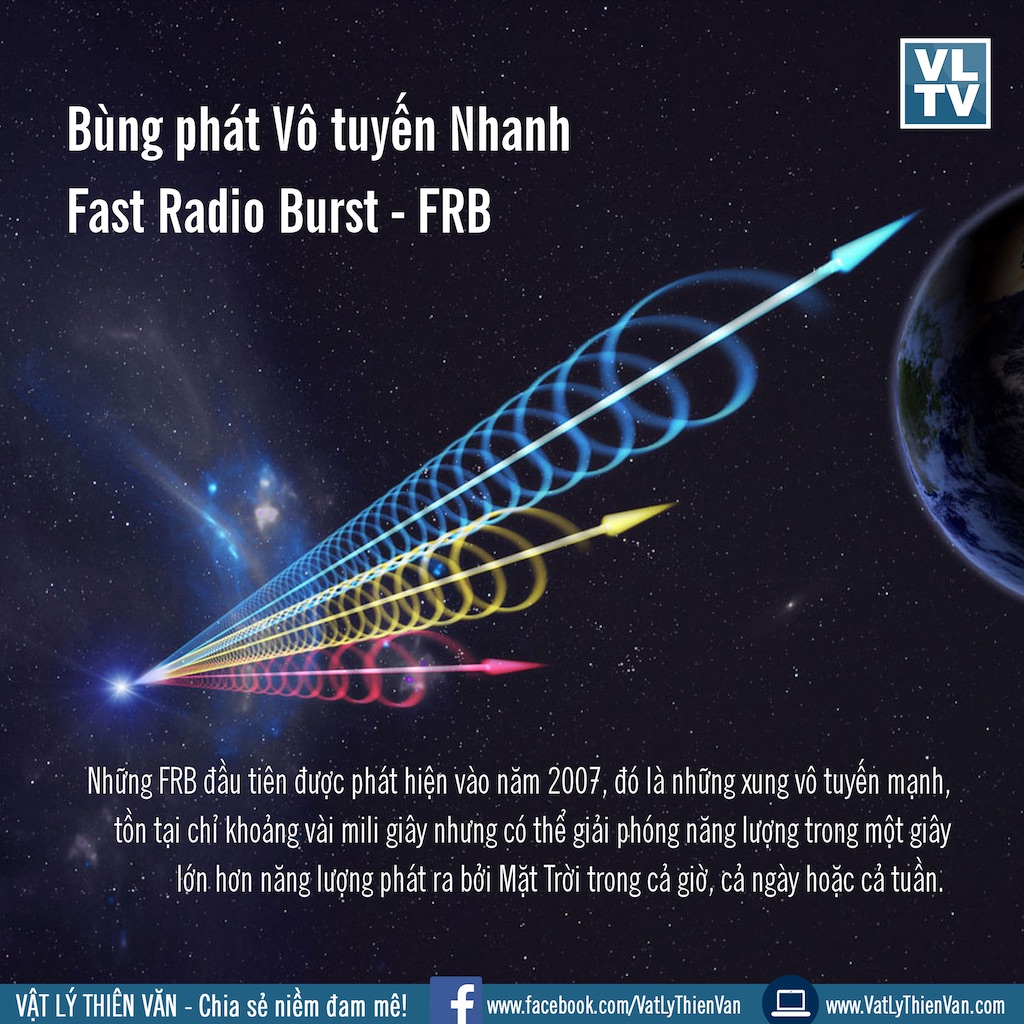 Những vụ bùng phát sóng vô tuyến nhanh, FRB - Fast Radio Burst, là những xung vô tuyến mạnh, tồn tại chỉ khoảng vài mili giây nhưng có thể giải phóng năng lượng trong một giây lớn hơn năng lượng phát ra bởi Mặt Trời trong cả giờ, cả ngày hoặc cả tuần.